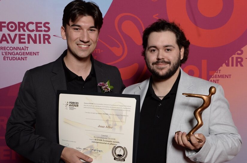 L’entreprise Jeux Allez, fondée par Thomas Perron et Alex Lavoie, a remporté la bourse de 5 000 $ dans la catégorie Économie sociale, entrepreneuriat et affaires lors du gala Forces AVENIR qui s’est tenu au Capitole de Québec le mercredi 15 octobre dernier.