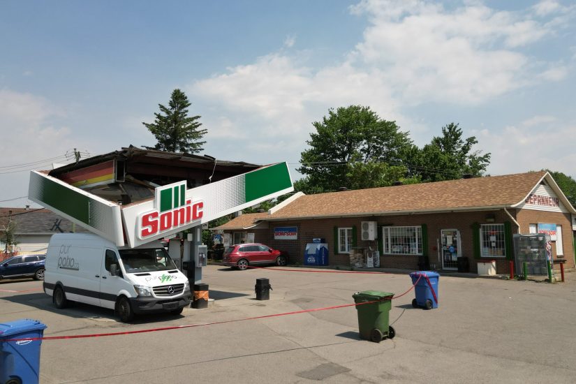 Jeudi le 1er juin en après-midi, le toit de la station service Boni-Soir sur le boulevard Curé Labelle à Prévost s’est effondré.