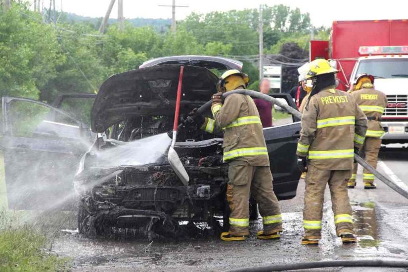 Un véhicule Ford Escape a pris feu en bordure de la route 117 Sud à Prévost près du poste d’électricité d’Hydro-Québec. L’incident s’est produit mercredi vers 17 h 30.