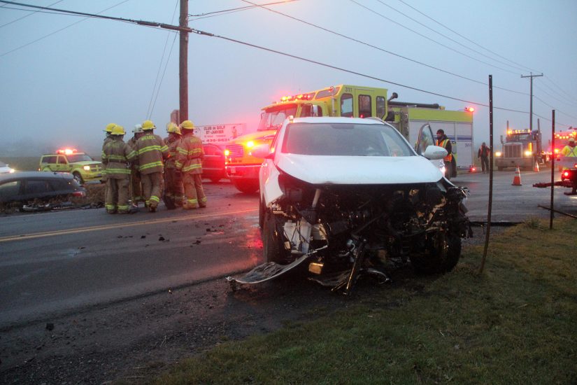 Un véhicule s’est retrouvé sur le toit dans le fossé à la suite de l’impact qui a nécessité l’intervention des pompiers. Le parechoc de l’autre voiture a subi des dommages importants.