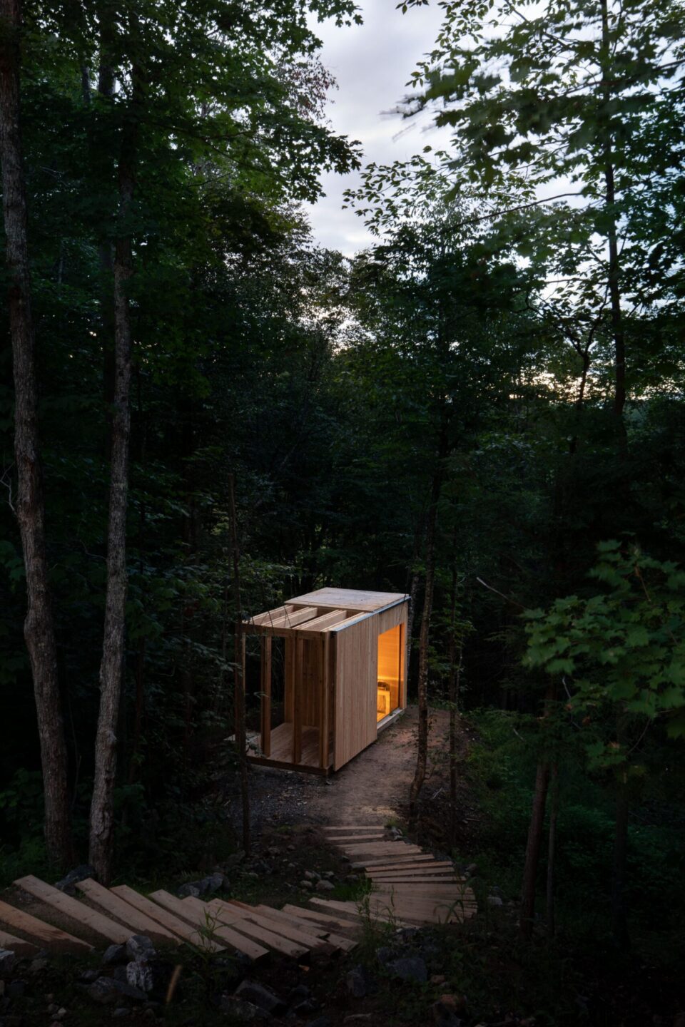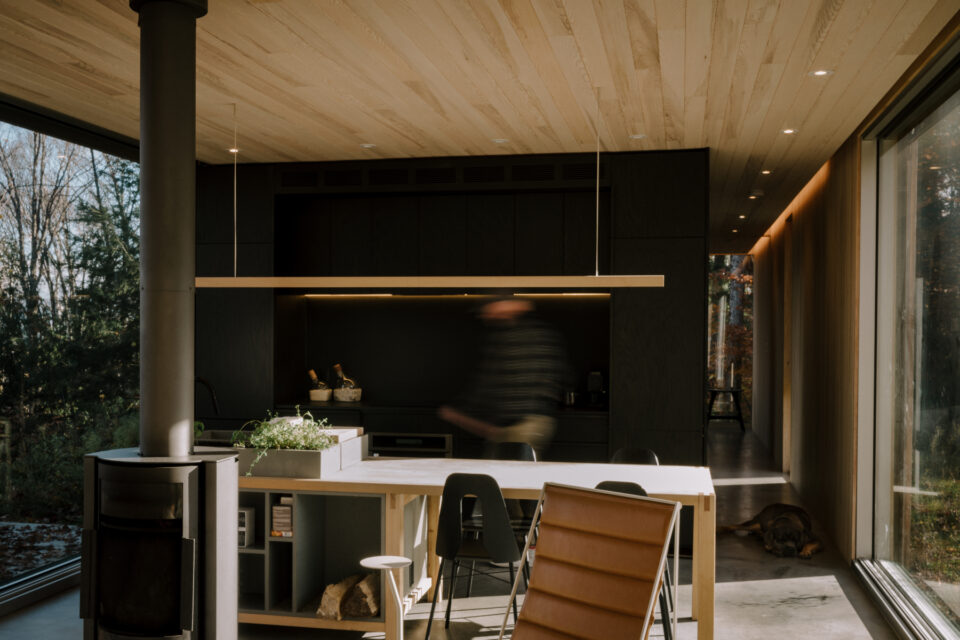 Emily Padan a fondé Hinter avec son mari Mauricio Padilla. Après quelques voyages en Norvège et dans d’autres pays scandinaves, ce dernier était très inspiré par l’architecture et l’intégration des habitations dans la nature et l’environnement. Il a donc voulu reproduire ce concept, ici, au Canada. Pour ce faire, il a travaillé avec l’architecte David Dworkind, connu pour ses projets, notamment à Montréal, pour le premier chalet, Hinterhouse.