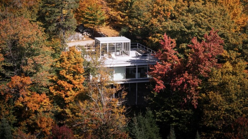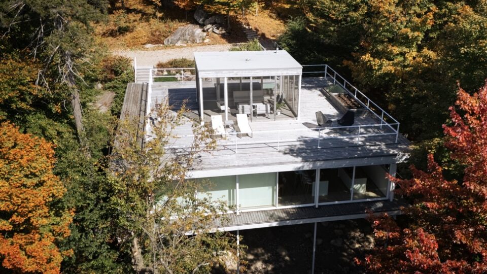 La forêt presque vierge de Wentworth-Nord a l’air enchantée, colorée par l’automne. Nous sommes en route pour visiter Le Grand Plateau, une maison signée par l’architecte Pierre Thibault, aux Domaines du Lac St-Victor. Les propriétaires, Pierre-Charles Boucher et son conjoint Claude, ont accepté de nous ouvrir leur porte.