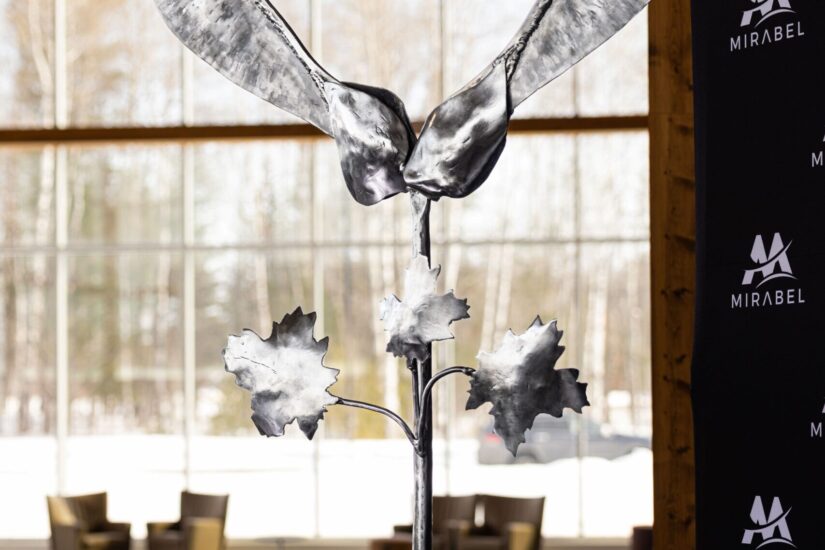 La sculpture Samare d’érable de l’artiste mirabellois Charlem Lepeintre est désormais installée en permanence dans la réception de l’hôtel de ville de Mirabel.