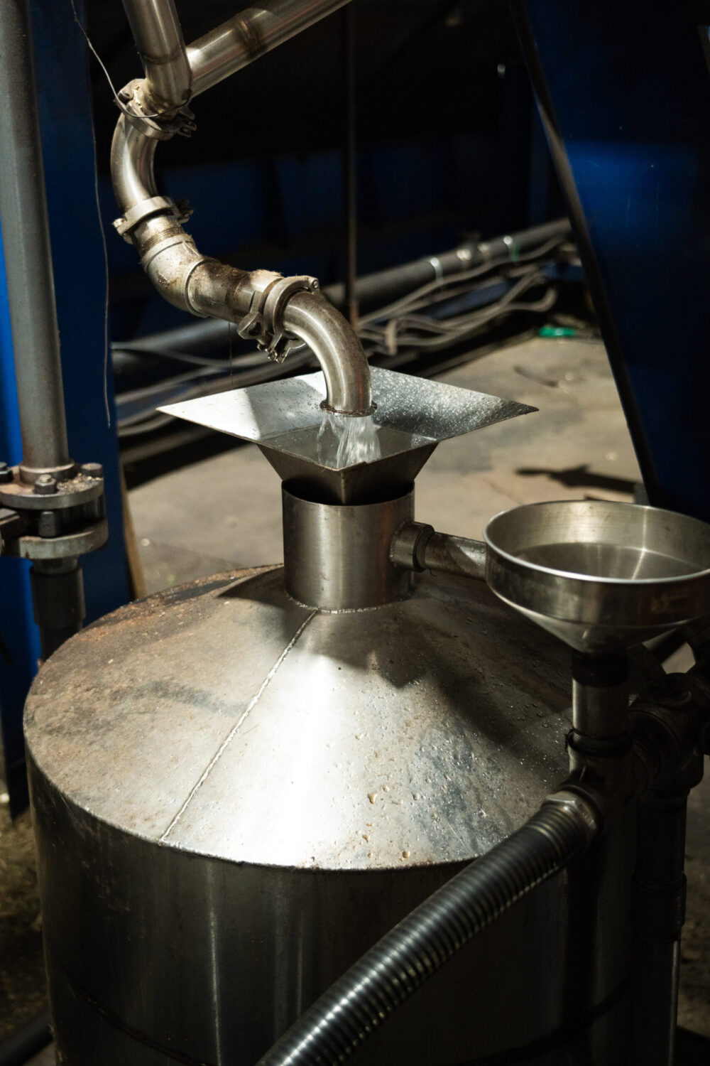 Le processus est aussi rigoureux que spectaculaire. Une fois broyée, la matière est acheminée vers de grandes cuves où débute la distillation à la vapeur d’eau. Aucun additif chimique n’est utilisé.