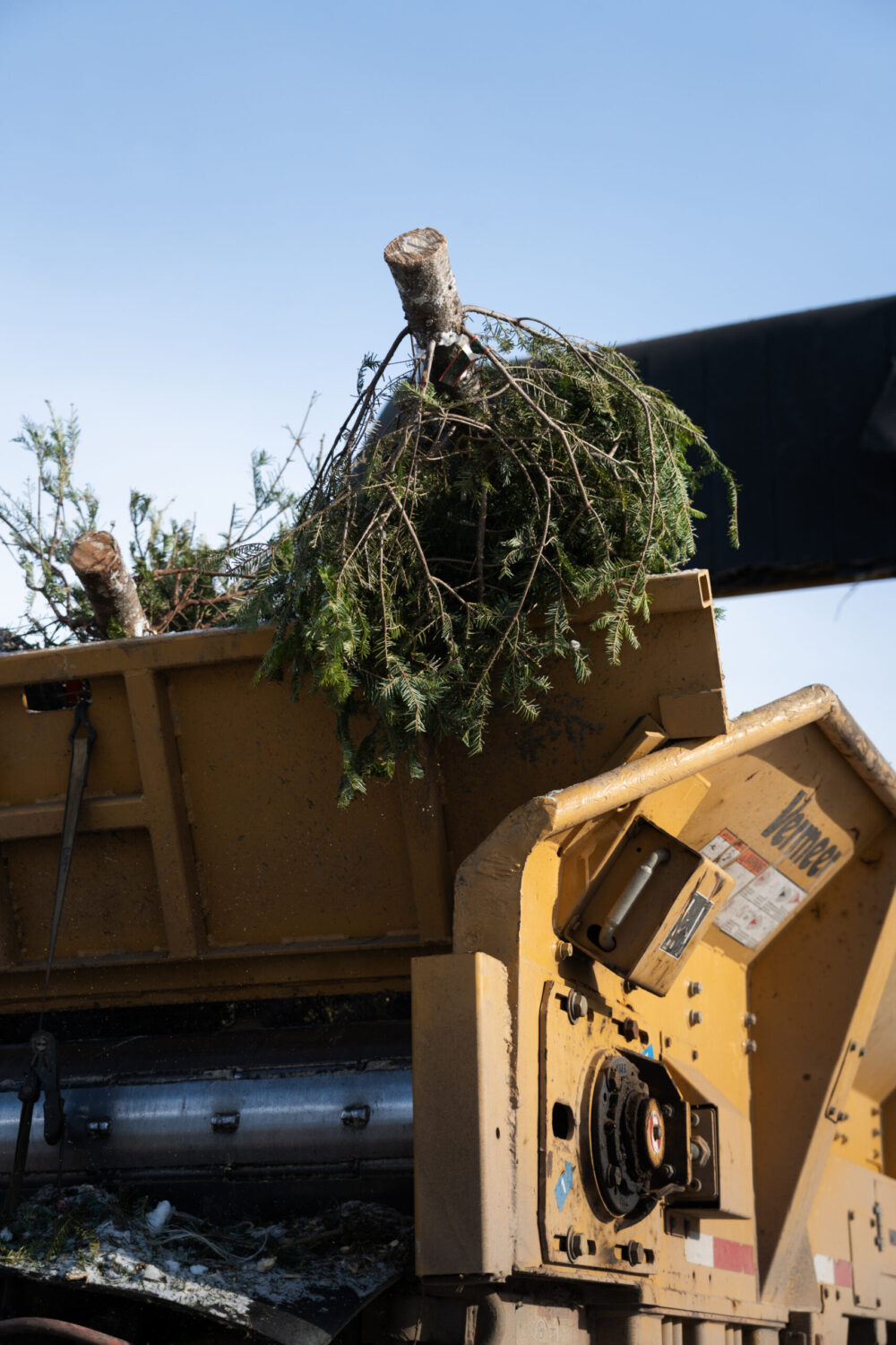 Au centre de l’usine, un immense broyeur industriel attire immédiatement le regard. La machine, unique en son genre au Canada selon l’entreprise, avale sapins et résidus de cèdre entiers pour les réduire en une matière fine, prête à être distillée. « Le sapin arrive ici entier, sans décorations. On le broie complètement avant de l’envoyer dans les cuves », explique Kevin Girard, directeur du développement chez Arbressence.