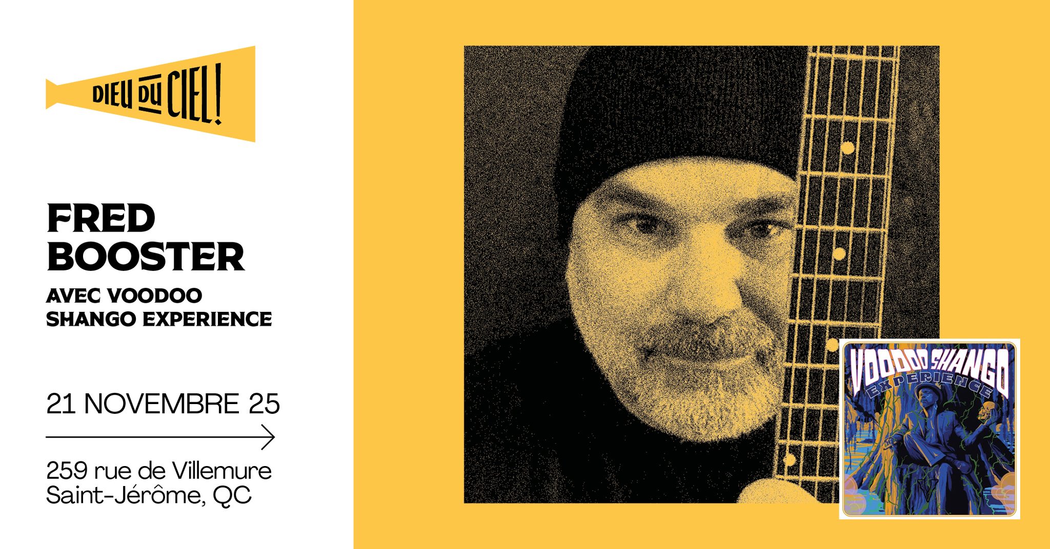 « Dieu du Ciel poursuit sa série de concerts dans son ancien pub du 259 rue de Villemure à Saint-Jérôme, converti dorénavant en salle de spectacle. Le 21 novembre, nous accueillons Fred Booster avec Voodoo Shango Experience. »