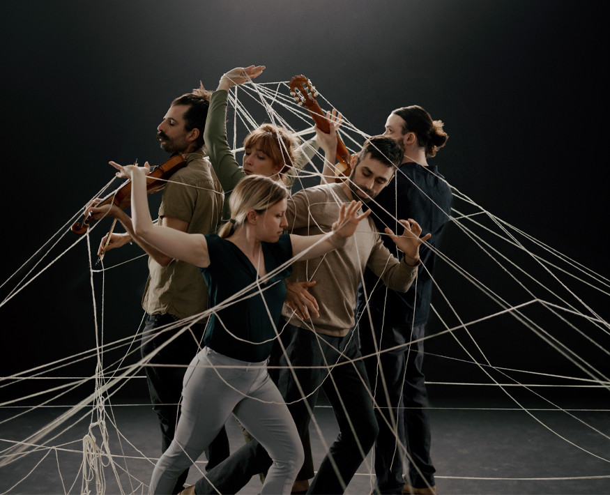 « L’écho des racines est un projet chorégraphique créé par La Sporée/Sarah Bronsard issu d’un dialogue fécond entre le flamenco et la gigue québécoise. Rassemblant huit danseurs et musiciens chevronnés, l’oeuvre explore les liens qui unissent de manière implicite ces deux traditions, tout en questionnant les limites qui les définissent dans le temps et l’espace. »