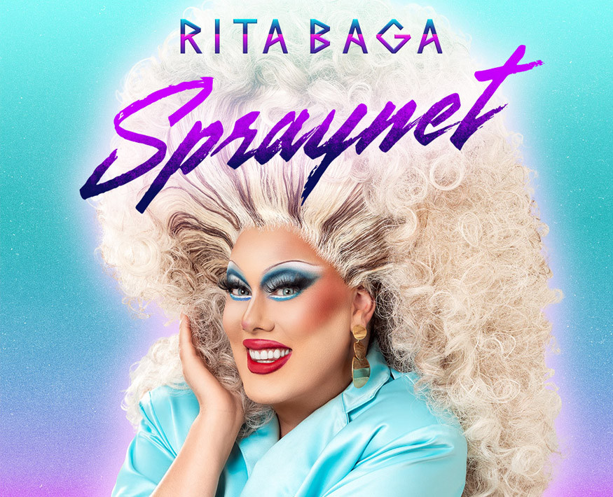 « Rita Baga, la plus célèbre drag queen québécoise qui s’illustre aussi en Europe, revient chez vous avec sa toute nouvelle tournée musicale Spraynet ! Rita a conquis le Québec avec Créature, la plus longue tournée solo d’une drag en Amérique, vue par 75 000 spectacteur.trices et récipiendaire d’un Olivier. »