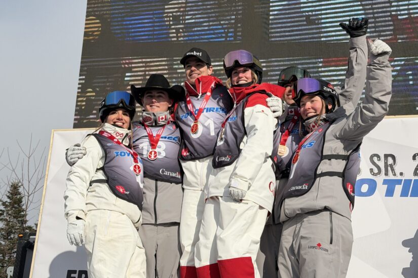 L’ambiance était festive à Saint-Sauveur. Quelques minutes après avoir remporté l’or, Mikaël a monté à deux reprises sur la plus haute marche du podium, une fois avec ses collègues masculins et une autre fois en compagnie de la gagnante chez les dames, l’athlète olympique de Sainte-Adèle, Laurianne Desmarais-Gilbert.