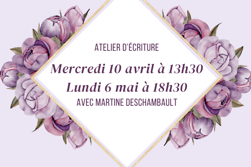 Le 26 mars prochain, un atelier d’initiation à l’écriture aura lieu à la bibliothèque de Saint-Colomban de 19h à 21h. L’atelier sera animé par Marilyn…