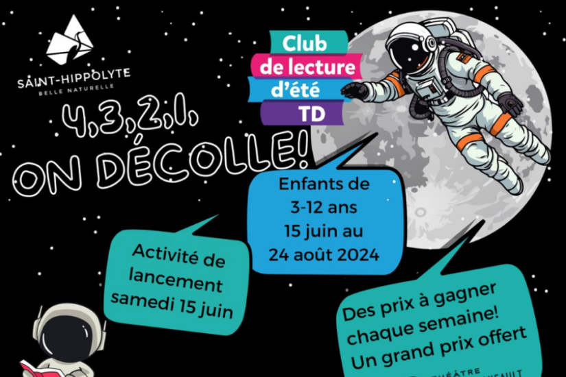 Une activité de lancement est organisée à Saint-Hippolyte pour le club de lecture d’été TD le 15 juin prochain. « L’activité de lancement du club d’été aura lieu le 15 juin à la bibliothèque. Cette année, sous le thème de l’espace, les enfants graviteront dans l’univers de la Voie lactée, des planètes, des constellations et plus encore. » Pour tous les détails, visitez le site web de la Municipalité de Saint-Hippolyte.