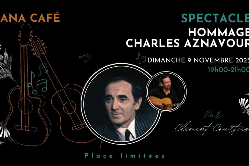 Où : Prana Café, Saint-Jérôme Quand : 9 novembre à 19 h « Hommage à Charles Aznavour, par Clément Courtois. Le spectacle débute à 19 h 00. Ouverture des portes à 17 h 00. »