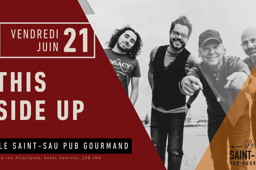 Le groupe This Side Up est de passage au Saint-Sau Pub Gourmand le 21 juin prochain à 21 h. « Ce groupe, fondé en 2001 à Sherbrooke, vous propose des grands classiques de tous genres. De Bon Jovi à CCR, de Bruno Mars aux Backstreet Boys, etc.Ce groupe est composé de 4 musiciens solides qui ont joué pour de grands noms comme Marie-Mai, Alicia Moffet et bien d’autres. » Pour plus d’informations, visitez la page Facebook du…