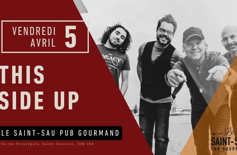 Le groupe This Side Up est au Saint-Sau Pub Gourmand le 5 avril prochain à 21h. « Soyez prêt à plonger dans un océan de riffs électrisants et de rythmes endiablés avec This Side Up, un groupe de musique rock alternatif canadien ! » Pour tous les détails, consultez la page Facebook du Saint-Sau Pub Gourmand.
