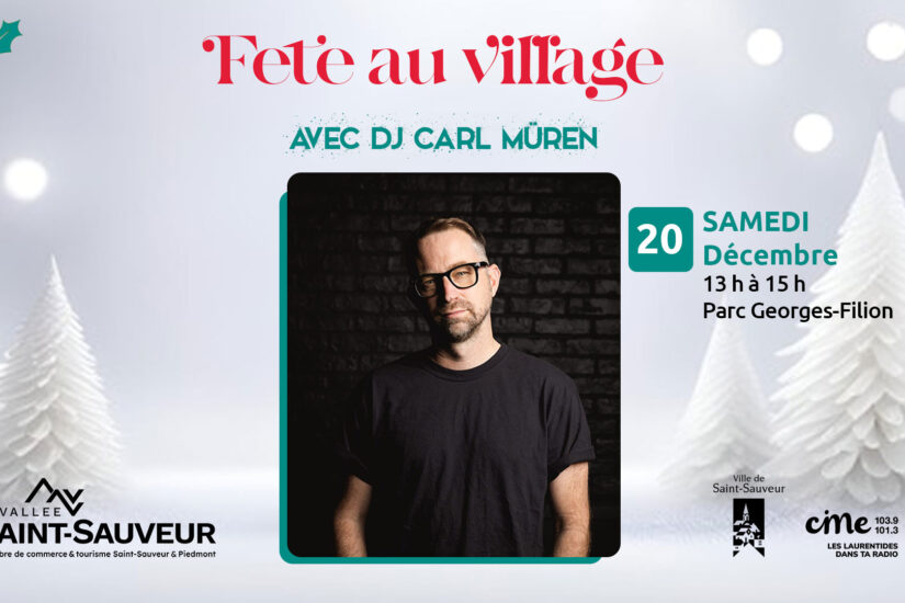 Où : Parc Georges-Filion, Saint-Sauveur Quand : 20 décembre de 13 h à 15 h « Joignez-vous à nous pour danser au son de DJ CARL MÜREN sur la scène extérieure du Parc Georges Filion, et vivez une ambiance hivernale des plus festives. »