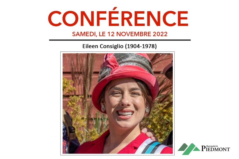 Le 12 novembre prochain, la Municipalité de Piedmont présente une conférence dans le cadre de son 100e anniversaire ! « La société d’histoire et de généalogie des Pays-d’en-Haut présente Madame Eileen Consiglio (1904-1978) », qui est : 1ère mairesse à Piedmont de 1957 à 1965 2ème mairesse dans l’histoire du Québec HORAIRE 9h30 | Accueil avec café et viennoiseries 10h | Début de la conférence 11h | Période de questions COÛT 5$ pour les membres de SHGPDH 10$ pour…